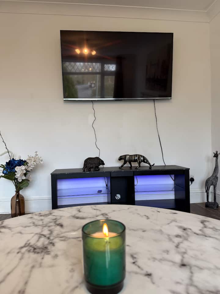 Kitanda 3 maridadi chenye Televisheni Janja, Maegesho na Sehemu ya Kufanyia Kazi