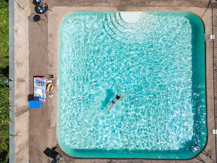 Vila ya kupendeza iliyo na bwawa, bustani yenye maua na mwonekano