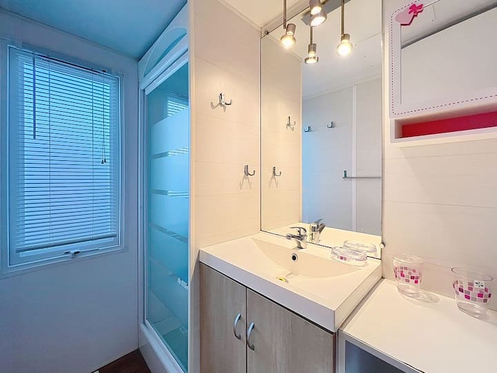 Nyumba ya magurudumu yenye mwonekano wa bahari mita 100 kutoka Ufukwe