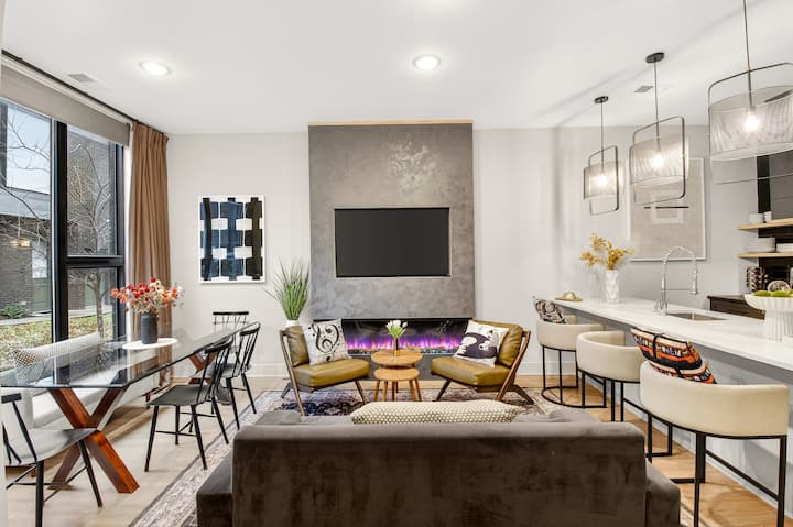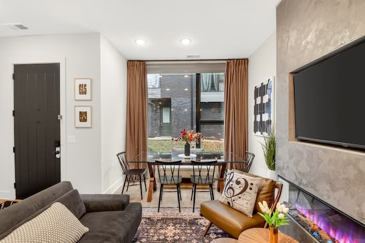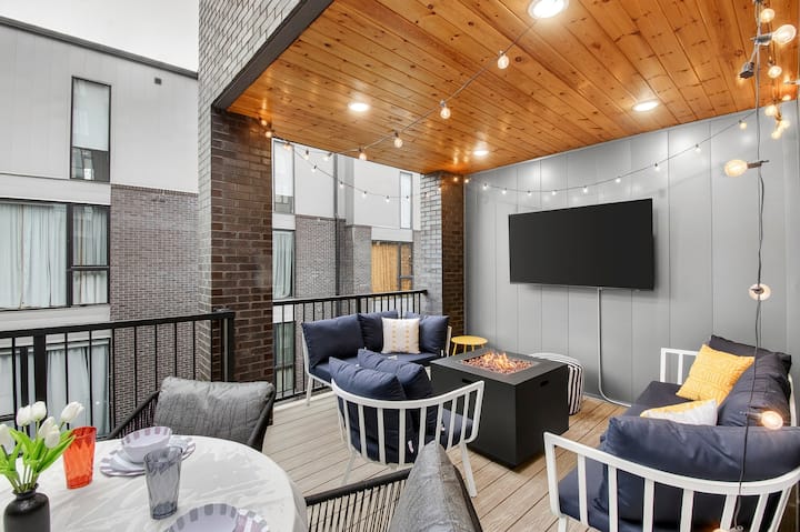 Nyumba ya Kifahari ya Vyumba 4 vya Kulala ya Music Row yenye Vitanda 3 vya King na Mahali pa Kuota Moto Juu ya Paa