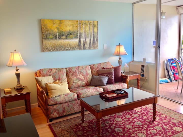 Kondo yetu iko mtaani moja kwa moja kutoka kwenye fukwe bora za kuogelea za Kihei (Kamaole Beach Parks I & II). Bustani hizi za ufukweni zinajulikana kwa mchanga wake laini, mwangaza wa kawaida wa jua na usalama wa kuogelea. Pia hutoa bafu, meza za pikiniki na sehemu ya wazi ya nyasi.
