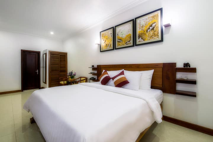 Viwanja vyetu vya amani na vya faragha hutoa mazingira bora kwa ajili ya mapumziko, lakini tuna safari ya dakika 10 tu ya tuk tuk kwenda kwenye mahekalu na ndani ya dakika 5 kutembea kwenda Barabara ya Pub, Soko la Kale na Maket ya Usiku, nyumba yenye machaguo mengi ya kula, ununuzi, kitamaduni na kupiga mbizi.