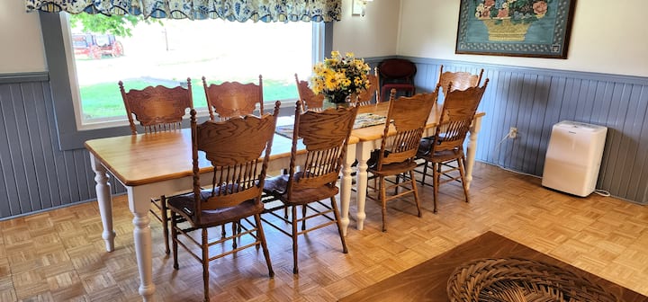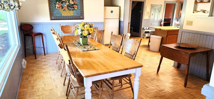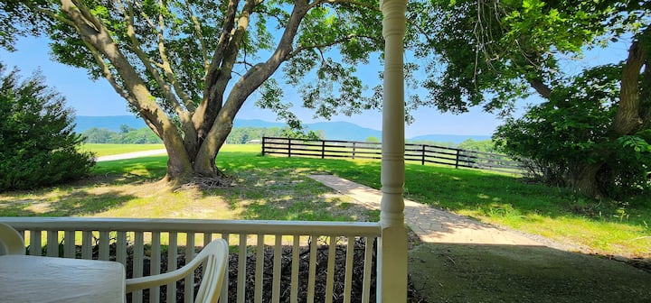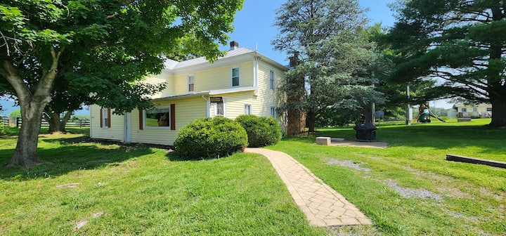 Nyumba ya Ranchi ina mapambo ya mashambani na ina jiko kubwa lenye futi 6. kisiwa na meza ya watu 12, chumba cha familia cha starehe, chumba rasmi cha kulia, vyumba vitano vya kulala na mabafu mawili kamili. Mashuka na vyombo vya jikoni vimetolewa, pamoja na televisheni ya kebo yenye skrini bapa. Kuna uwanja wa michezo kwenye ua wa pembeni, na sehemu nyingi za nyasi, na kufanya hii kuwa sehemu nzuri ya kutumia wakati mzuri na familia na marafiki! Shimo la moto na jiko la gesi - kuni na propani hutolewa. Wageni katika River's Bend Ranch wanaweza kufurahia uvuvi, ndege, njia nzuri za kutembea na kupanda farasi kwenye eneo letu la Shenandoah's South Fork-kufunguliwa kwa umri na uwezo wote. Kukiwa na ufikiaji rahisi wa Luray Caverns, Skyline Drive, mji wa Luray, matembezi, kayaki na kadhalika, kuna kitu kwa kila mtu. Watoto (na watu wazima!) watapenda kukutana na wanyama wetu wa shambani, ikiwemo kondoo, ng 'ombe, kuku (na wakati mwingine vifaranga wachanga!), farasi, paka mabanda, na mbwa wetu wa kirafiki, anayependa umakini.