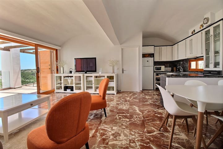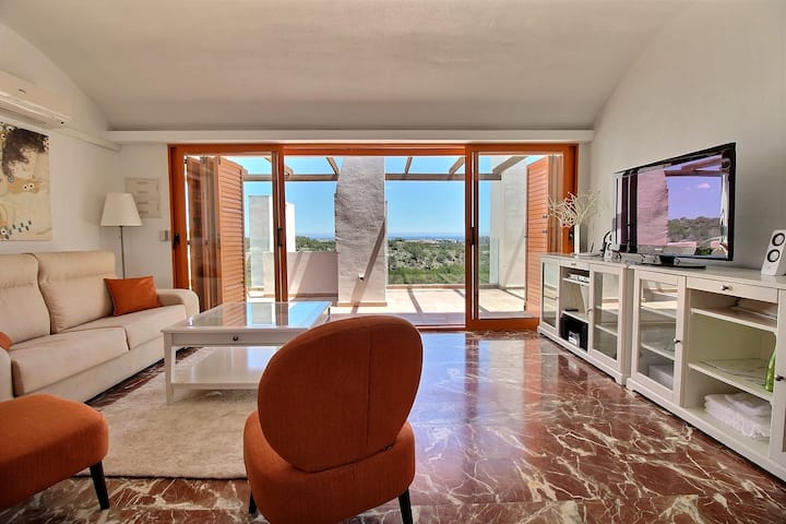 Penthouse na mtazamo wa ajabu juu ya Golf, bwawa, bahari
