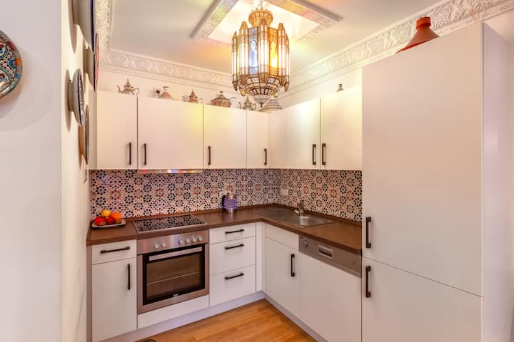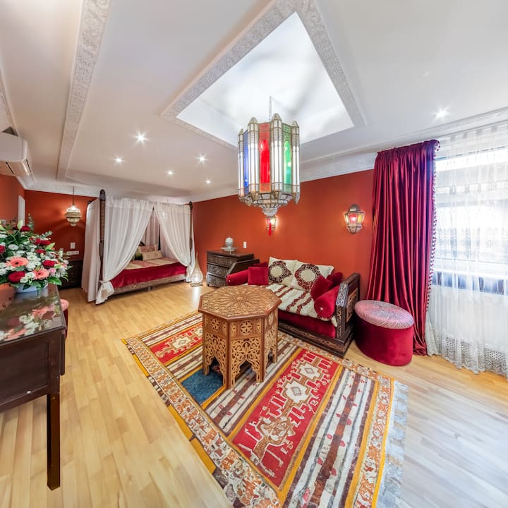 Chumba cha Le Marrakech kilicho na samani kilicho na vitu vya VIP kwa hadi wageni 3 walio na viwango vya juu vinapatikana kwa muda wa chini wa siku 2. Chumba (45 sqm) pia kinafaa kama chumba cha fungate. Mgeni wa ziada atakaa kwenye chumba kipya cha kulala (Desemba 2022) cha sanduku la chemchemi.