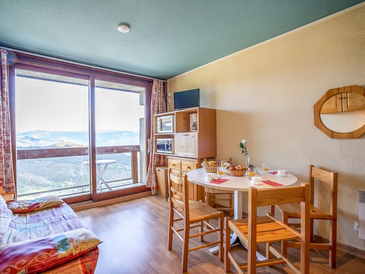 Sebule/chumba cha kulia chakula chenye sofa 1 (sentimita 130, urefu sentimita 190), kitanda 1 cha kuvuta (sentimita 2 x 80, urefu sentimita 190), televisheni (skrini bapa). Toka kwenye roshani. Chumba cha jikoni mlangoni (sahani 2 za moto, oveni, mashine ya kuosha vyombo, mikrowevu, jokofu). Mabafu 2 ya nyonga/WC. Mfumo wa kupasha joto wa umeme. Sakafu za parquet. Roshani 2 4 m2. Mwonekano wa milima na bonde. Vifaa: mashine ya kufulia. Intaneti (Wi-Fi, ya ziada). Tafadhali kumbuka: wasiovuta sigara pekee. King 'ora cha moshi. Fleti ina studio mbili pacha, zinazowasiliana . Ofa ya mtu binafsi kulingana na Art. 155, IV ya CGI.