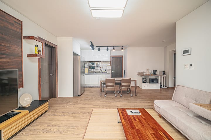Sehemu kubwa ya ghorofa ya 2, kuteleza kwenye mawimbi, dakika 2 kutoka ufukweni, kuishi kwa mwezi mmoja, duka la vyakula, kozi ya kutembea, Wandangbong, bahari, mgahawa, kutembea bila viatu, mwonekano wa usiku, barabara ya msituni
