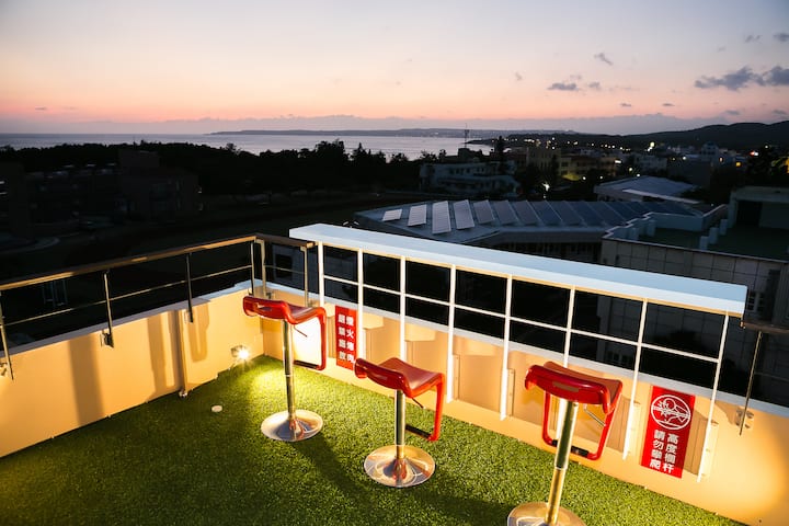 Mwonekano wa ajabu wa bahari Nyota Nyota ghorofa ya juu ya paa mtaro dakika 3 kutembea hadi ufukweni Tembea hadi Mtaa wa Kenting sekunde 15 Kavu na kavu kavu na kikausha watu 2 hukaa katika vitanda viwili