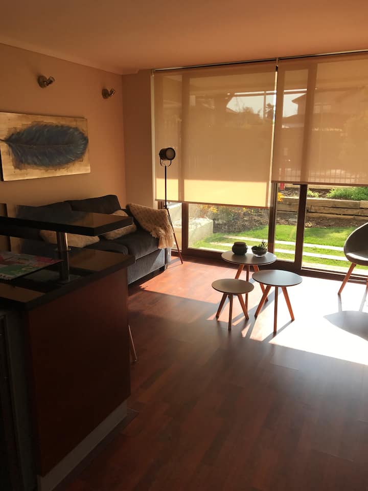 Lindo departamento con jardin 110