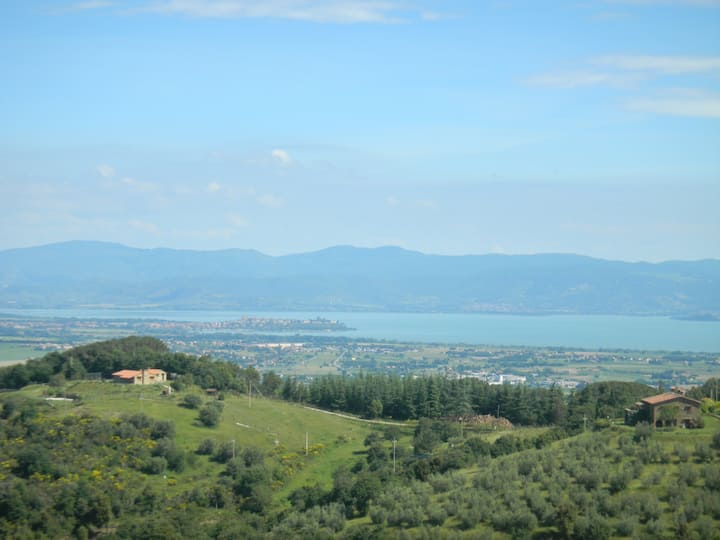 Sijawahi kuona mwonekano kama kutoka kwenye nyumba yetu: nikija juu ya Mlima. Pausillo unaweza kuona kutoka Perugia hadi Cortona; kutoka Assisi hadi Città della Pieve, kutoka Mlima. Cetona na Amiata kwenye Milima ya Sibillini, Maziwa ya Chiusi, Trasimeno na Pietrafitta. Chianciano, Montepulciano na mengi zaidi.... Je, siamini? Njoo uipende na uchague mahali uendako kwa siku hiyo.