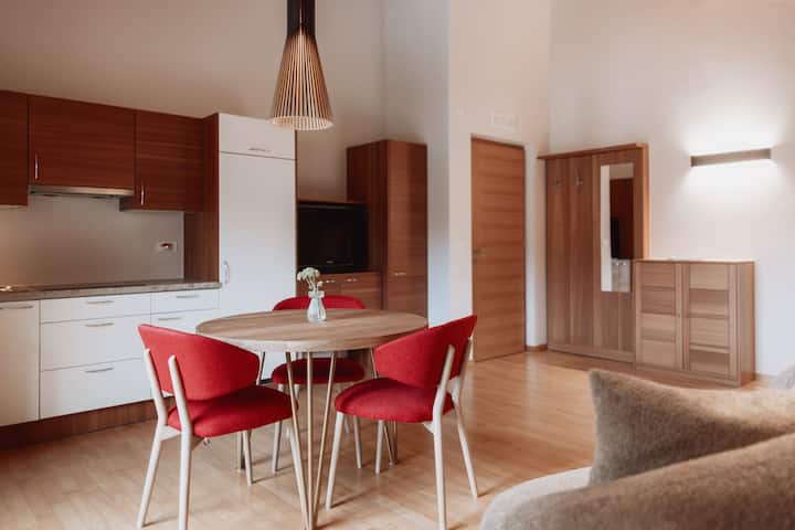 Fleti ya likizo ya mraba 55 ya kifahari yenye vyumba viwili vya kulala na roshani