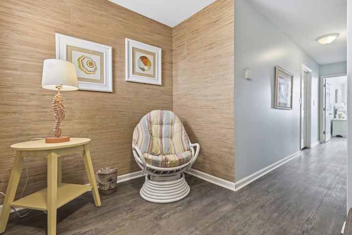 Ikiwa kwenye ufukwe wa bahari, Unit 202 inatoa mandhari ya ajabu ya Atlantiki na ufikiaji rahisi wa mchanga na mawimbi hatua chache tu. Ikiwa na nafasi ya kulala wageni hadi 10 kwa starehe, nyumba hii inafaa kwa familia au makundi yanayosafiri pamoja. Ukiwa katika Ufukwe wa Surfside, utapata mazingira tulivu, yanayofaa familia huku ukiwa bado umesalia dakika chache kutoka kwenye eneo la kula, ununuzi na burudani la Myrtle Beach.