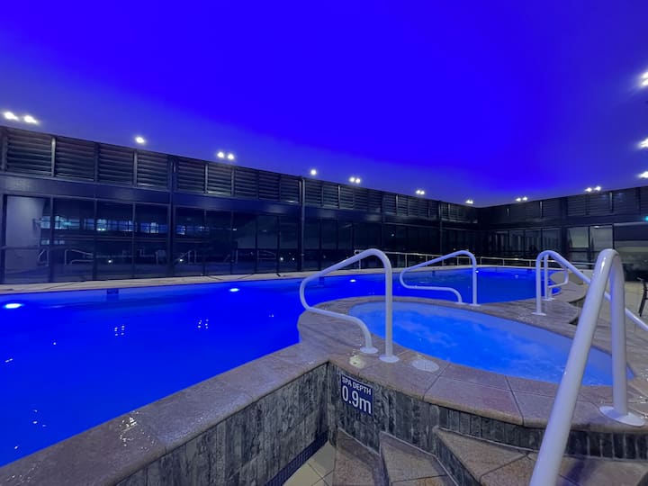 Bwawa la nje la pamoja - inapatikana mwaka mzima, inafunguliwa saa mahususi, bwawa dogo, kifuniko cha bwawa, lililopashwa joto, paa la nyumba, ukubwa wa olimpiki