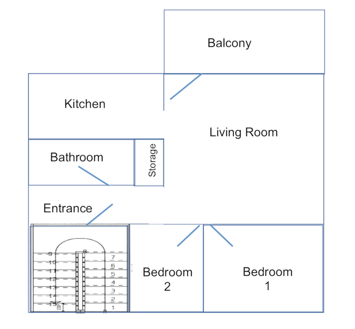 - vyumba 2 vya kulala
