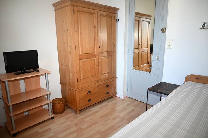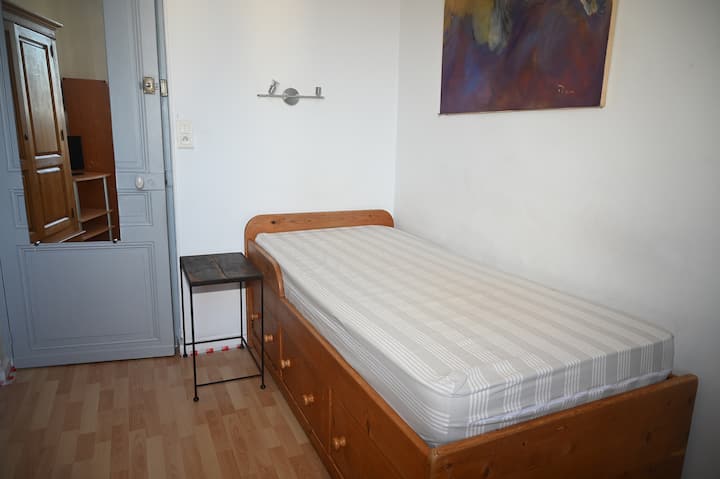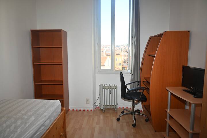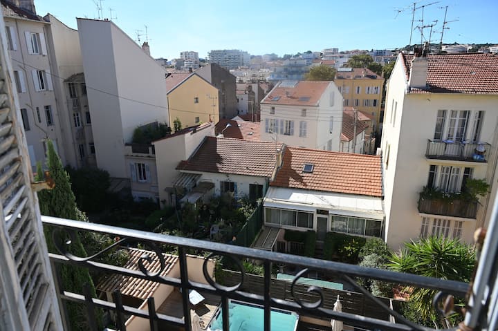 Ninakodisha vyumba 1 vyenye samani huko Cannes (O6) vya vyumba 16 vya bila malipo, kwa bei ya Euro 40 kwa usiku kwa mtu 1 na Euro 50 kwa Euro mbili50 kwa usiku, katika fleti iliyo na vifaa kamili, starehe, intaneti ya wi fi isiyo na kikomo, chumba cha televisheni kilicho na kitanda 1 cha 140, uhifadhi, friji, intaneti ya Wi-Fi, televisheni ya skrini ya gorofa, roshani, mwonekano wa panoramic wa California, tulivu sana, katikati ya Cannes, dakika 7 kutembea kutoka Croisette, fukwe na Palais des Festivals, dakika 5 kutoka Rue d 'Antibes na Rue Meynadier, maduka na usafiri wa mijini dakika 3 kutembea. Eneo tulivu na la kijani kibichi, maegesho ya gari ni bila malipo katika kitongoji chote. Kituo cha treni cha SNCF na kituo cha basi dakika 3 chini ya barabara, Croisette, Palais des Festivals beach dakika 7 kutembea.