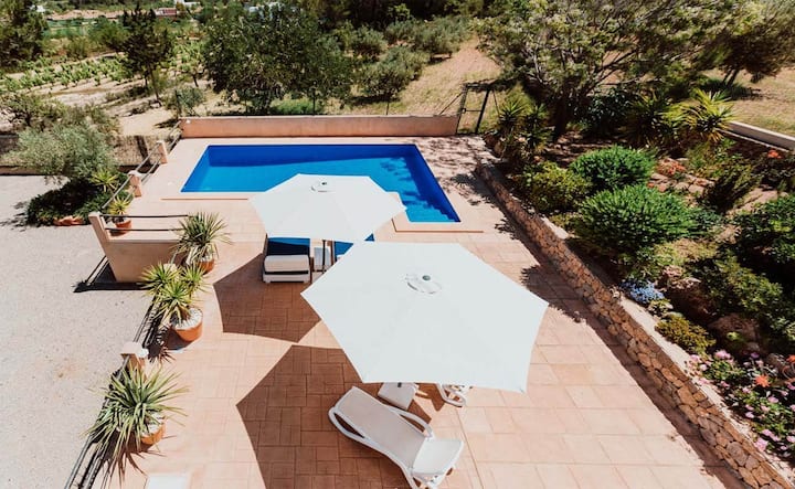 Can Xumeu ni nyumba ya mashambani iliyojitenga yenye eneo kubwa lenye uzio, iliyo umbali wa kilomita 2.5 tu kutoka pwani ya Port des Torrent na kilomita 4-5 tu kutoka kwenye fukwe za Cala Bassa na Cala Conta. Eneo hilo ni tulivu na liko karibu sana na miji kama San José au San Agustín. Ni nyumba safi na iliyo mahali pazuri, rahisi kwa mtindo lakini yenye vistawishi vyote vya kuhakikisha likizo yenye starehe.