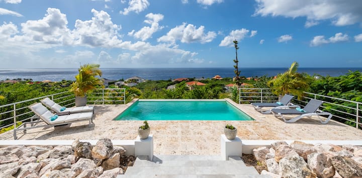 Nyumba ya kustarehesha na ya kupendeza yenye bwawa la kujitegemea na mwonekano mzuri wa bahari. Katika kitongoji cha juu cha Coral Estate na Usalama wa 24-7. Ndani ya umbali wa kutembea kwa mazingira mazuri kwa matembezi mazuri, kupiga mbizi, kupiga mbizi na kufurahia bahari nzuri ya bluu ya feruzi au kupumzika kwenye pwani ya kupendeza, yenye kivuli. Dakika 15 tu za kuendesha gari mbali na fukwe nzuri zaidi na maeneo ya kupiga mbizi Curacao inapaswa kutoa (zaidi ya 25!). Maeneo mazuri ya kula, kuwa na kinywaji cha kuburudisha, angalia moto, tembelea wasanii wa ndani, panda farasi au ununue mboga ndani ya dakika 15 kwa gari. Kituo cha kihistoria na maarufu duniani cha jiji la Willemstad, kituo cha ununuzi cha Kimataifa cha Sambil kilichofunguliwa hivi karibuni na mojawapo ya viwanja 3 vya gofu ambavyo kisiwa hicho kinapaswa kutoa ni ndani ya dakika 30 kwa gari.