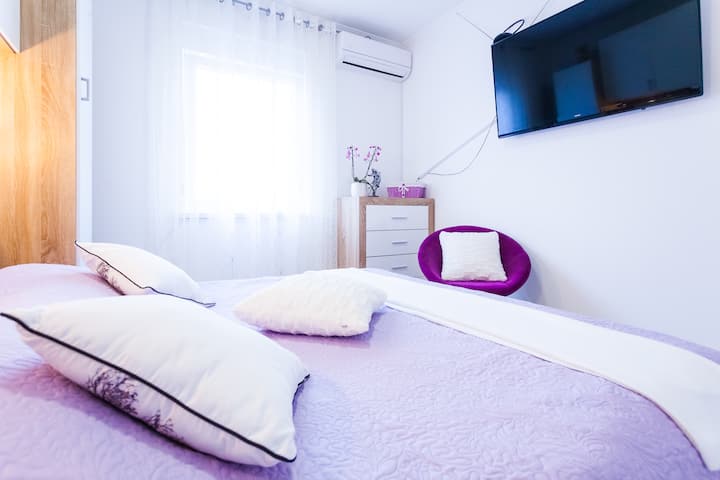 Uwezo wa fleti A2 ni wa watu 2, ukubwa wa fleti ni mita 25 za mraba + baraza, ua na bustani. Fleti ina vifaa kamili.