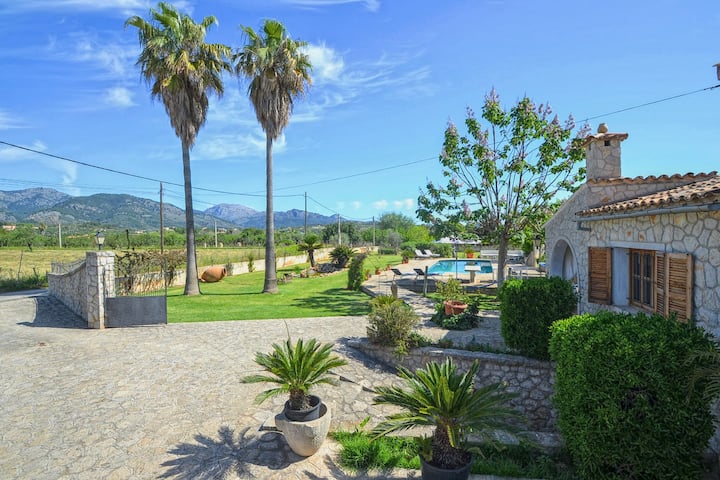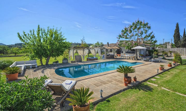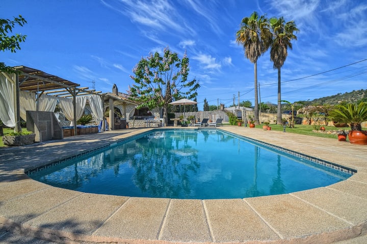 Nyumba ya shambani yenye mandhari nzuri, bwawa na jakuzi na a/c