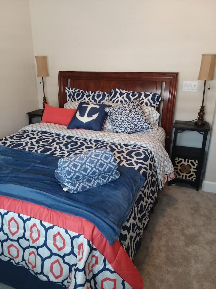 Punguzo la ukaaji wa muda mrefu! Queenbed/bafu la pamoja/televisheni ya 43",dawati