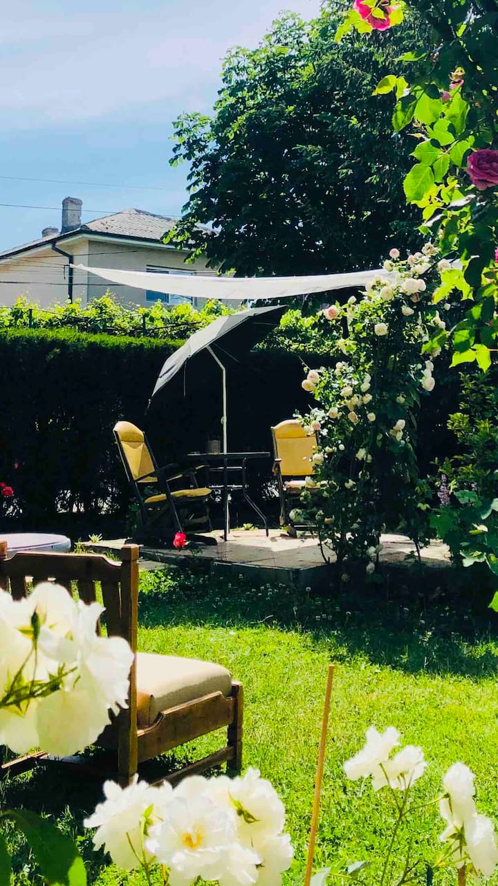 Habari! mimi na mke wangu ni wafamasia! Tuna nyumba iliyo na ua mzuri na majengo matatu! tunaishi katika jengo moja, katika jengo moja kuna vyumba 4 vyenye mabafu ya kujitegemea, viwili juu na viwili chini, na katika jengo jingine 1 chumba cha familia kilicho na bafu la kujitegemea! Jiko lina vifaa! Mtaro ni mkubwa na bustani ni mita za mraba 350!