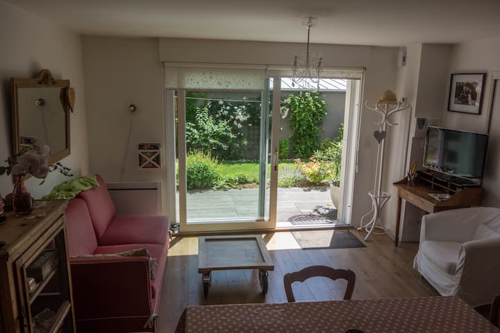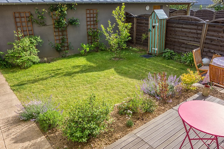 Fleti pacha yenye uchangamfu iliyo na bustani.