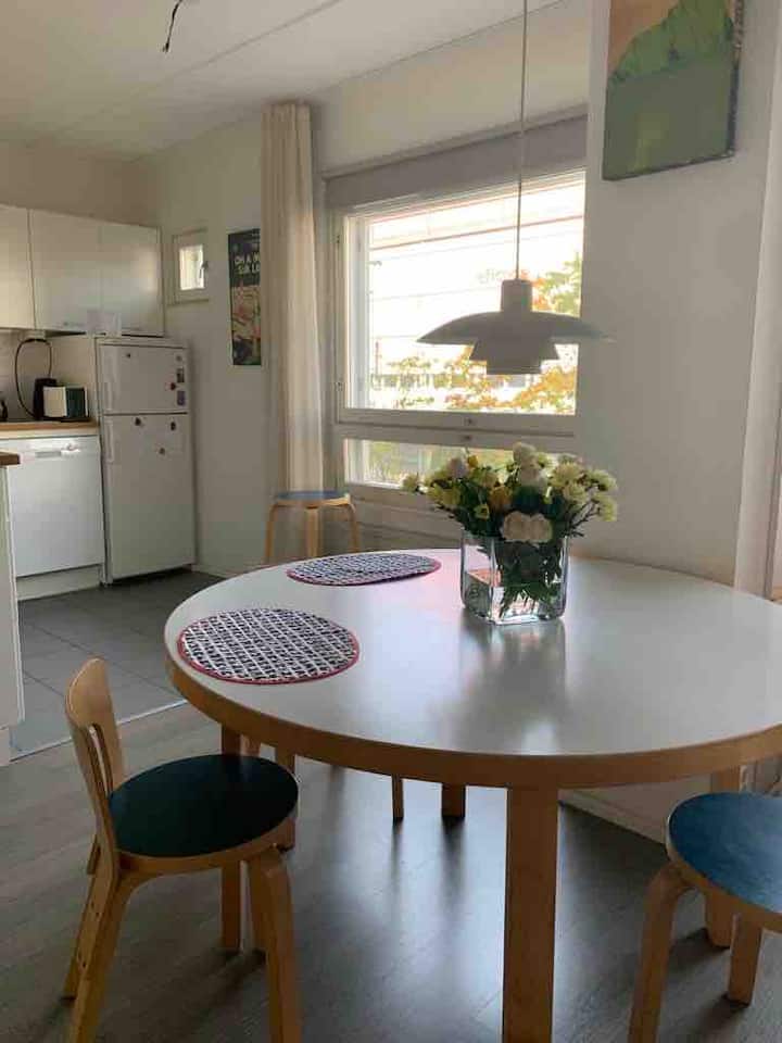 Fleti katikati, tulivu + maegesho ya bila malipo 60m2