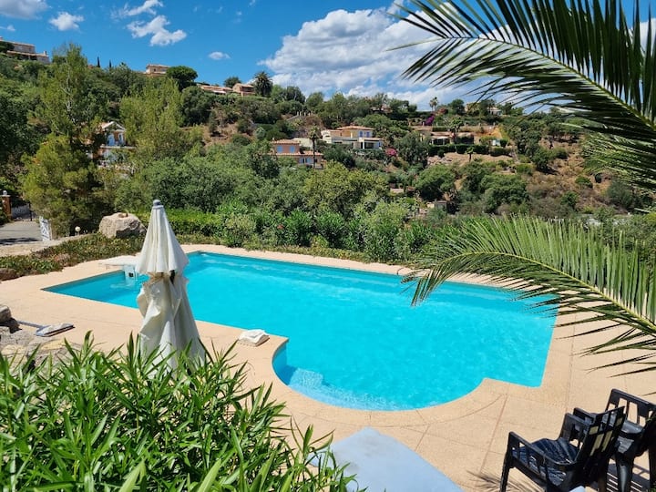 Fikiria kuamka kila asubuhi ili kuona mandhari ya kupendeza ya vilima vya lush na bahari inayong 'aa ya Les Issambres. Vila yetu ya kupendeza, iliyojengwa katika Domaine Souvenance yenye utulivu, ni likizo bora kwa wale wanaotafuta kuzama katika anasa na utulivu wa Riviera ya Ufaransa. Jiwe tu kutoka kwenye fukwe nzuri za mchanga za Plage Les Éléphants na La Nartelle, ukaaji wako unaahidi kupumzika kama unavyofurahisha.