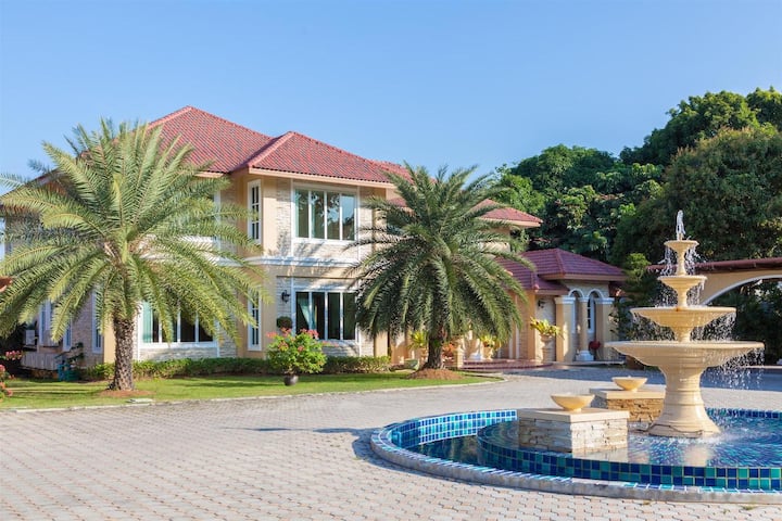 Nyumba ya Kupangisha ya Ufukweni ya Chumba 9 cha Kulala na Bwawa la Kujitegemea na Bustani Ndogo ya Wanyama