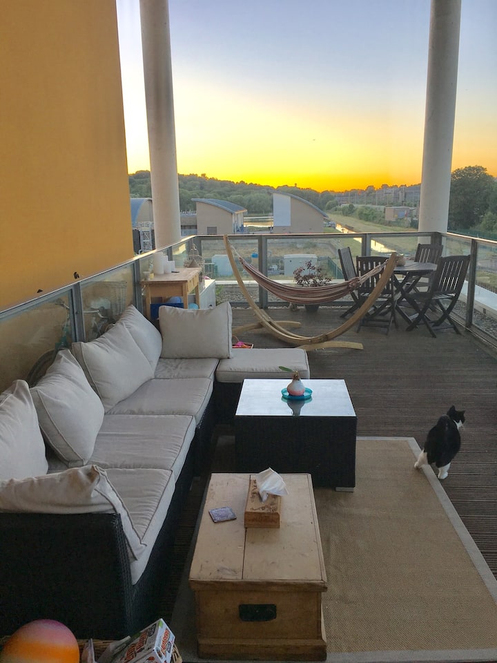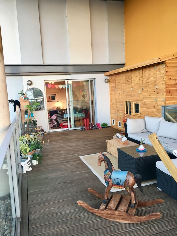 fleti ya kupendeza yenye baraza kubwa la paa