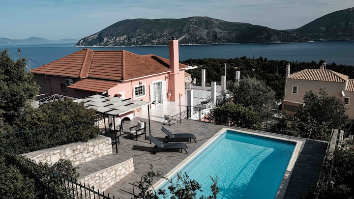 Evreti Villa yenye mandhari ya kuvutia, karibu na Fiscardo