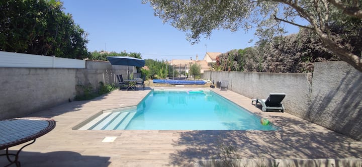 Karibu na Béziers na bahari, nyumba ya starehe iliyo na bwawa