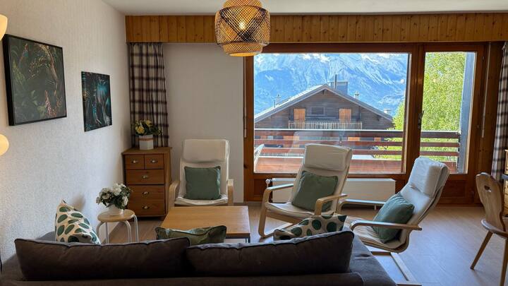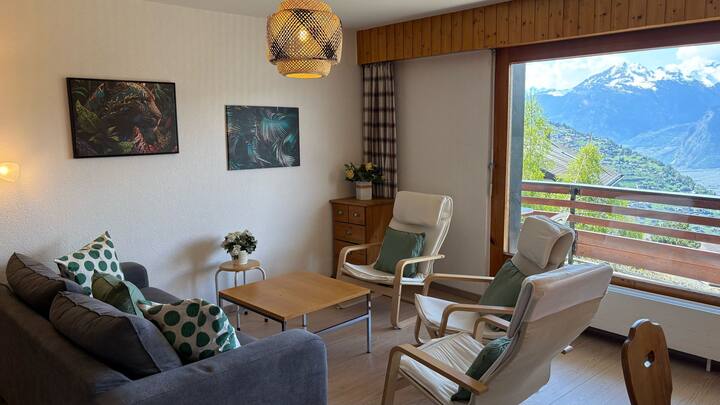 Uko katika makazi ya Beaulieu ambayo yanafurahia eneo la kifahari juu ya bwawa la kuogelea na katikati ya mapumziko yenye maduka na migahawa yake.Mwanzo wa gondola ya Veysonnaz uko umbali wa takribani mita 350. Makazi haya yanajumuisha fleti kadhaa za kawaida na za starehe. Kila fleti ina roshani au mtaro unaotoa mwonekano mzuri wa Bonde la Rhone.