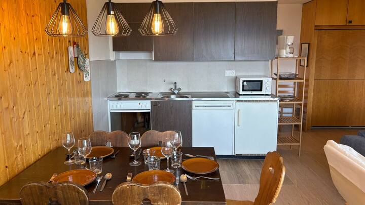 Lala katika fleti hii, katika risoti ya skii, iliyozungukwa na mazingira ya asili.