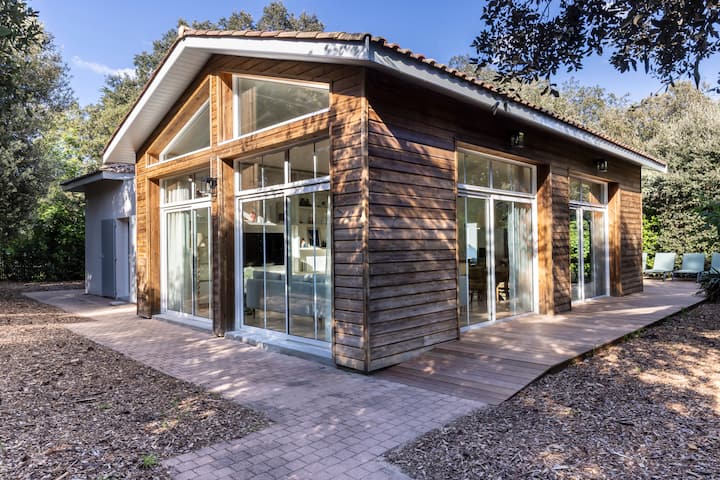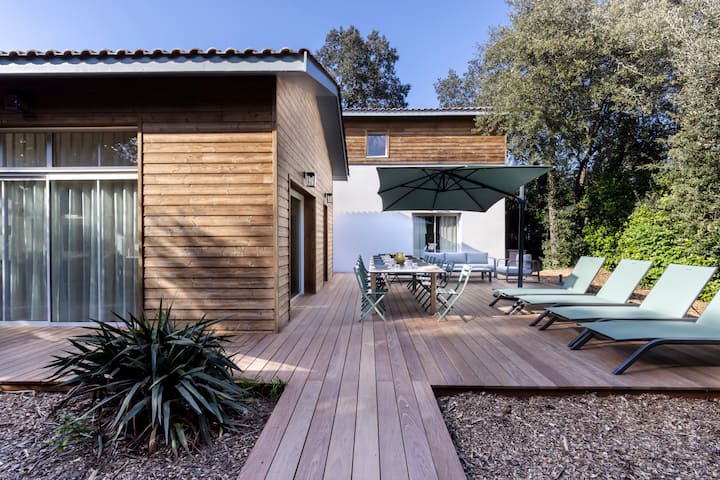 Je, ungependa vila kubwa ya kisasa inayotazama Bassin au vila iliyo na bwawa la kuogelea ambayo ni umbali mfupi wa kutembea hadi ufukweni?