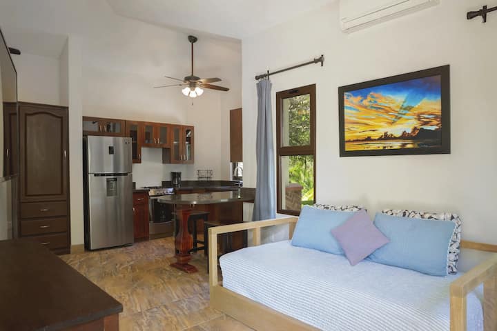 Mi Casita Soñada ni bora kwa solo au jozi ya kusafiri ya bajeti. Ni eneo la kupendeza, lililojitenga lililo nyuma ya nyumba ya ufukweni. Ina sehemu yake tofauti ya kuingia na iko hatua chache tu kutoka Panga Drops surf mapumziko na kutembea kwa muda mfupi hadi Playa Colorado na Los Perros. Studio ina sebule/sehemu ya kulia chakula ya kawaida, jiko lenye ufanisi, bafu, kitanda cha malkia na chumba cha kulala cha futoni. Studio pia ina AC, Wi-Fi na huduma ya usafishaji siku tatu kwa wiki.
