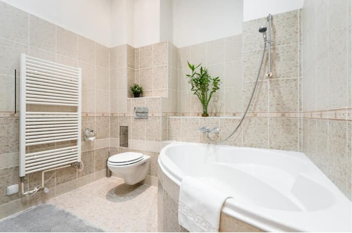 Tunafurahi kushiriki nyumba yetu katikati ya Prague wakati wowote tunaposafiri. Fleti hiyo inafaa kwa watoto wachanga — midoli inaweza kutolewa unapoomba. Nitapendekeza kwa furaha maeneo yanayowafaa watoto yaliyo karibu, pamoja na mikahawa na mikahawa mizuri. Kuzichunguza ni mojawapo ya mambo ninayopenda!