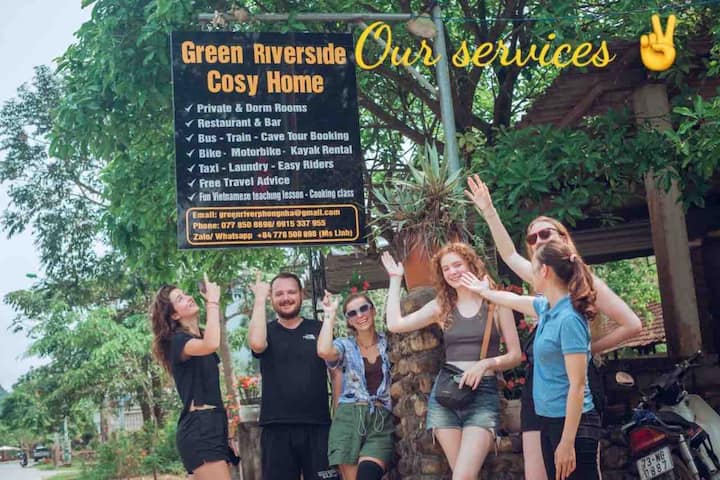 “Kusafiri hakuhusu maeneo pekee, kunahusu watu. Njoo kwa ajili ya mapango, kaa kwa ajili ya chakula, familia, mandhari na shughuli za kufurahisha. Fanya urafiki, unda kumbukumbu zisizosahaulika na uchukue kipande cha Phong Nha uende nacho nyumbani. Familia yetu ya kirafiki na yenye ukarimu inasubiri kwa hamu kukusalimu kwa mikono wazi na kufanya Green Riverside Cosy Home iwe nyumba yako ya pili.”