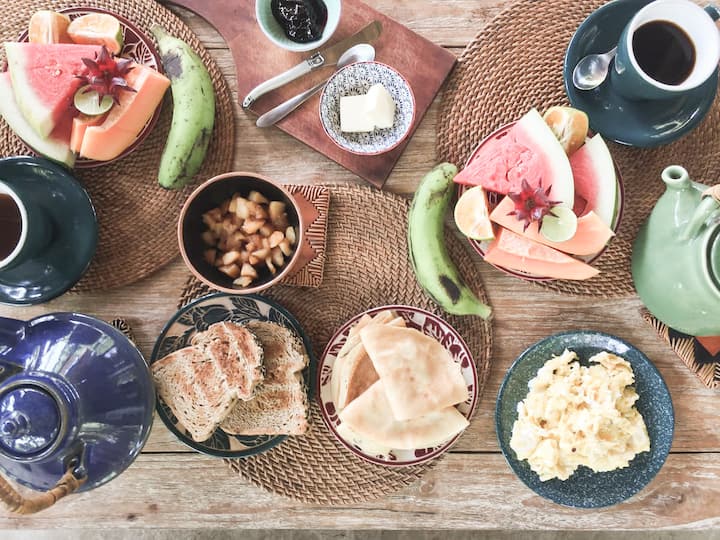 Kibanda cha Mianzi cha Asili cha Jadi Kimya kinajumuisha kifungua kinywa