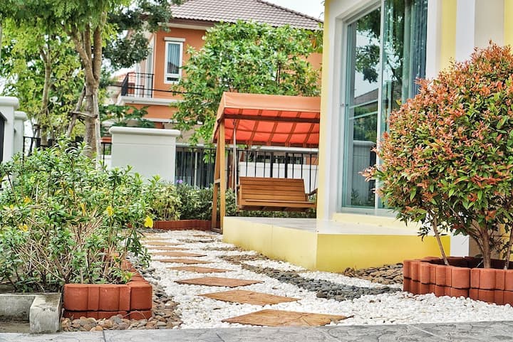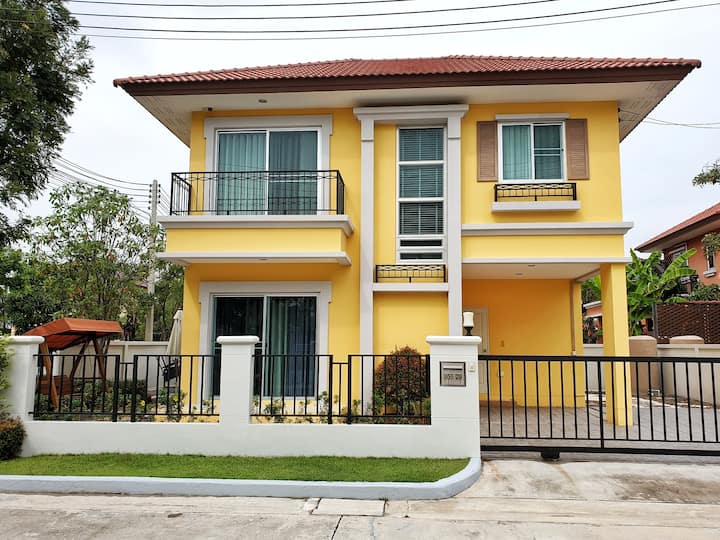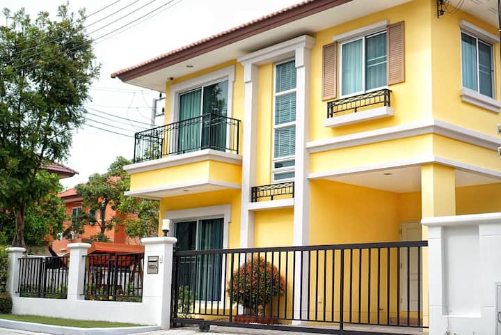 Nyumba nzuri - Ufukweni katika ChaAm-HuaHin (vyumba 3/mabafu 2.5/sebule 1/Jiko 1/bustani kwa ajili ya sherehe ya BBQ)