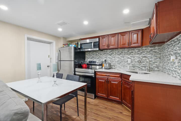 Fleti ya Kisasa yenye Maegesho na Bustani, Dakika 30 kutoka NYC