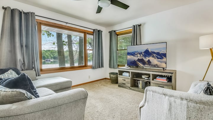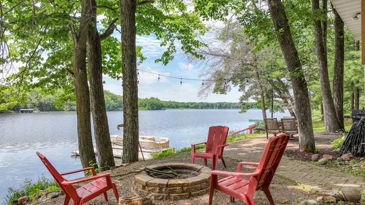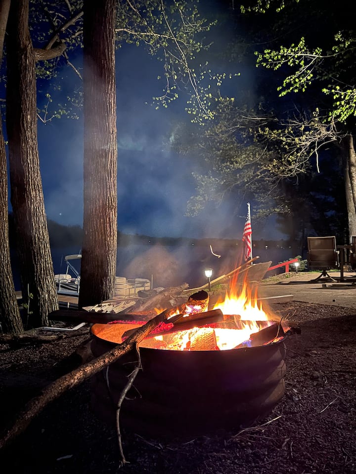 Majira ya KUPUKUTIKA/MAJIRA YA BARIDI: Samaki wa barafu, gari la theluji, au kiatu cha theluji! Starehe kando ya eneo la moto la kuni la ndani au kwa siku za majira ya kupukutika kwa joto huwa na moto nje. Furahia rangi za majira ya kupukutika kwa majani ziwani (pontoon yetu inapatikana kukodisha hadi Oktoba!)