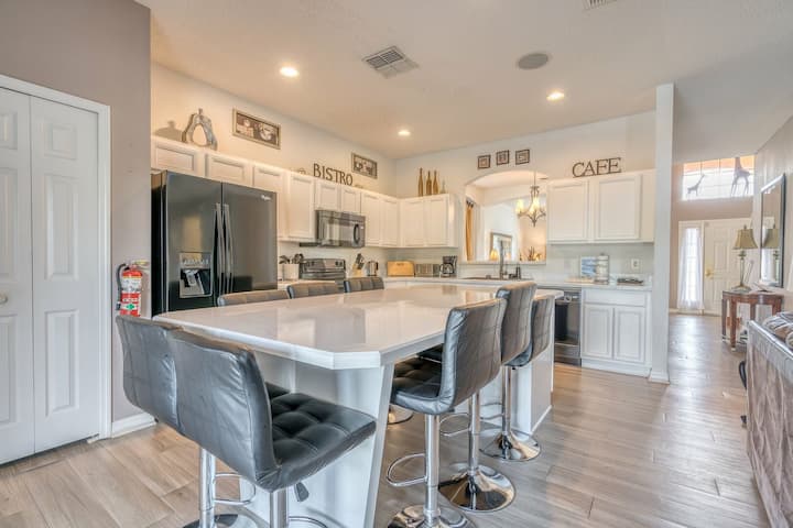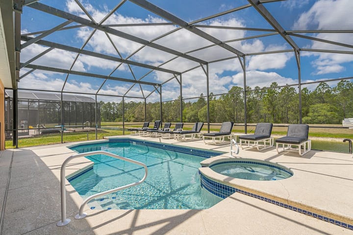 Nyumba hii ina kila kitu ambacho wewe, familia yako, na marafiki mtahitaji na zaidi! Walt Disney World Resort® ni ishara 2 tu za trafiki. Nyumba hii ya kifahari ya Kusini Magharibi inayoelekea kwenye bwawa, iliyokamilika mwezi Juni 2005, ina vyumba 6 vya kulala, mabafu 5½ na itachukua watu 12 pamoja na watoto wachanga kwa starehe. Bwawa la kibinafsi la futi 30 x 14ft na spa lina eneo kubwa, lililopanuliwa karibu nalo na linakamilishwa na ukumbi wa futi 40 x 10 unaotoa kivuli. Taulo zote na kitani cha kitanda vitatolewa.
