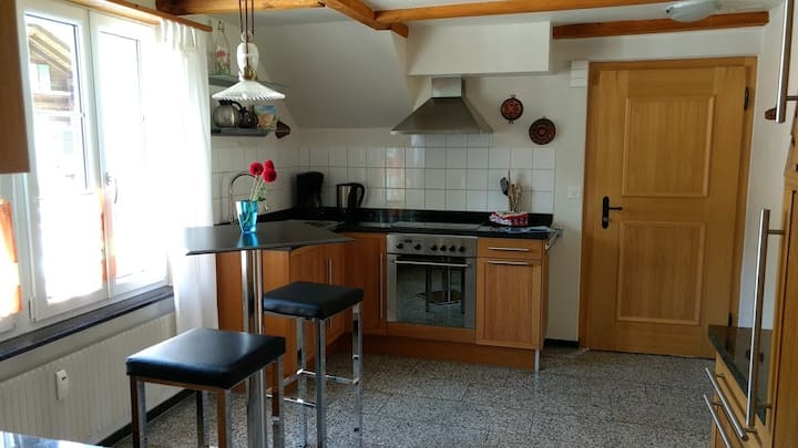 Nyumba hii iliyokarabatiwa na kubadilishwa kuwa fleti tatu nzuri, nilikulia humo. Mimi mwenyewe siishi Meiringen, lakini nina usaidizi unaofanya kazi kwenye eneo ili wageni wangu waweze kujisikia vizuri.