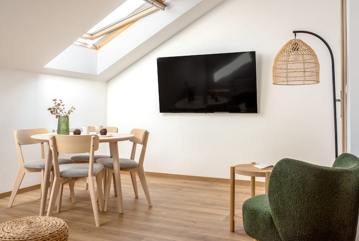 Fleti ya kisasa iliyo na chumba cha kulala na AC