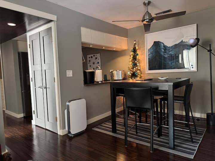 Kupitia Airbnb yangu, nilijumuisha upendo wangu wa teknolojia, sinema, michezo ya video na mazoezi ya viungo katika ubunifu kwa kujumuisha ukumbi wa sinema wa nyumbani, ukumbi wa mazoezi wa nyumbani, baiskeli 2 na vifaa vya nyumbani vya kisasa kote. Ninaita eneo langu JerBnb (Kitanda na Kifungua kinywa cha Jeremy :)