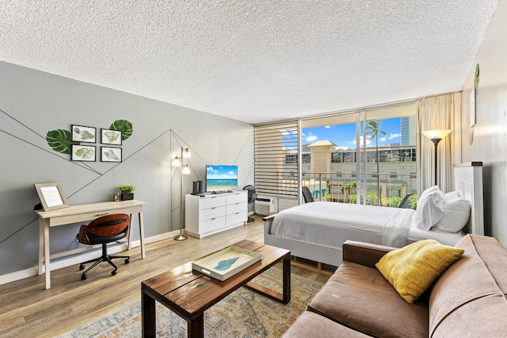MODERN STUDIO IN CENTRAL WAIKIKI + PARKING + POOL