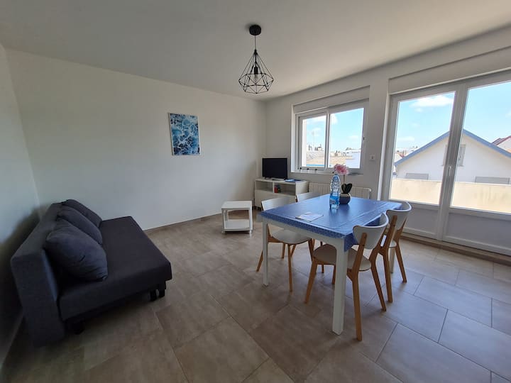 Bright karibu na ununuzi wa bahari. Maegesho ya bure.
