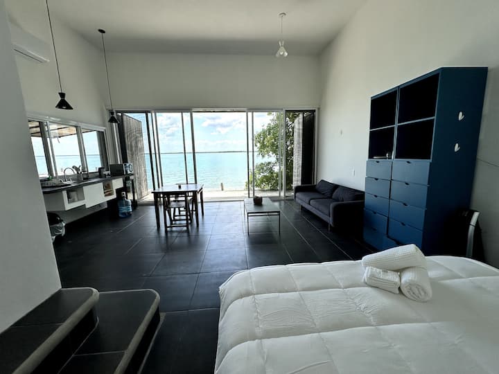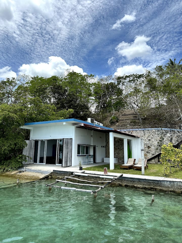 Nyumba hii iko kwenye Laguna de Bacalar.