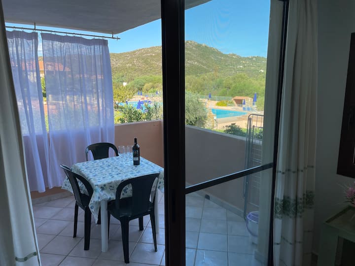 EUC 215_Fleti, iliyozungukwa na kijani kibichi, yenye mwonekano wa bahari na bwawa la kuogelea.